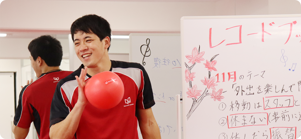 看護師や生活相談員と協力してトレーニングに取り組みます。